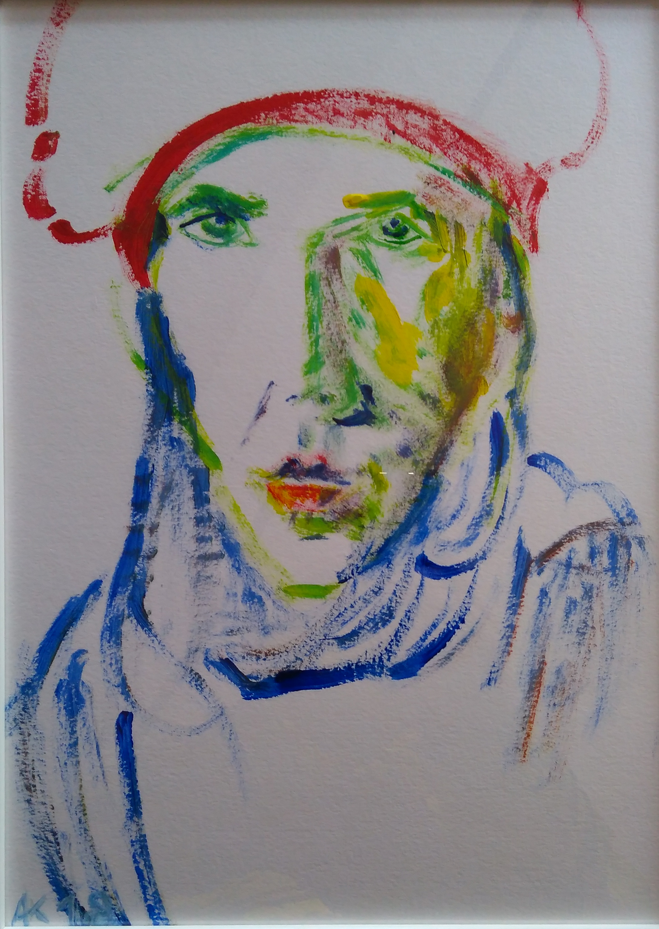 480 Selbstportrait mit roter Mütze, Acryl auf Papier, 03.2018, 30x40cm, vergeben