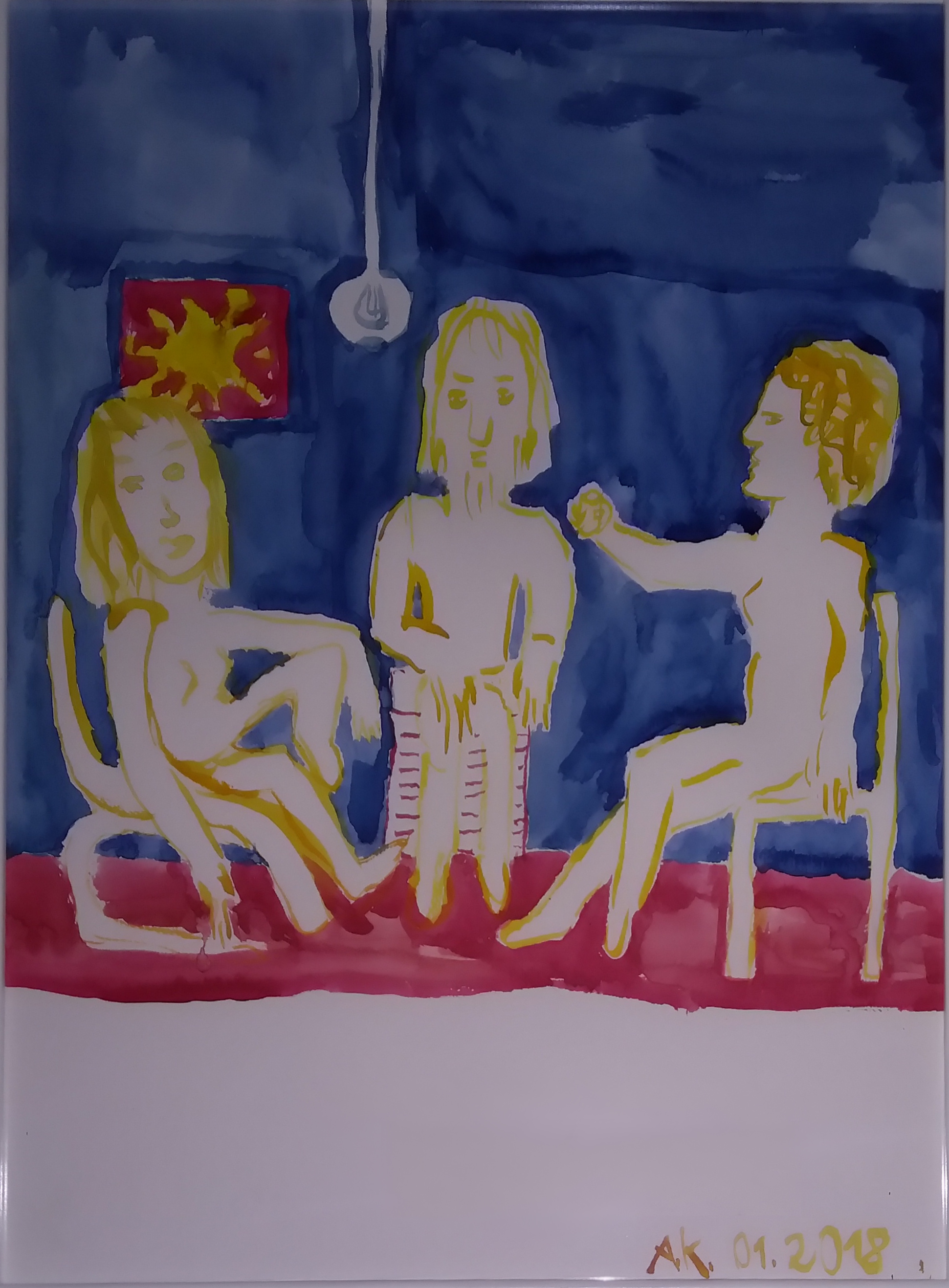 870 Kinderstube, Acryl auf Papier, 02.2018, 30x40cm, 50€