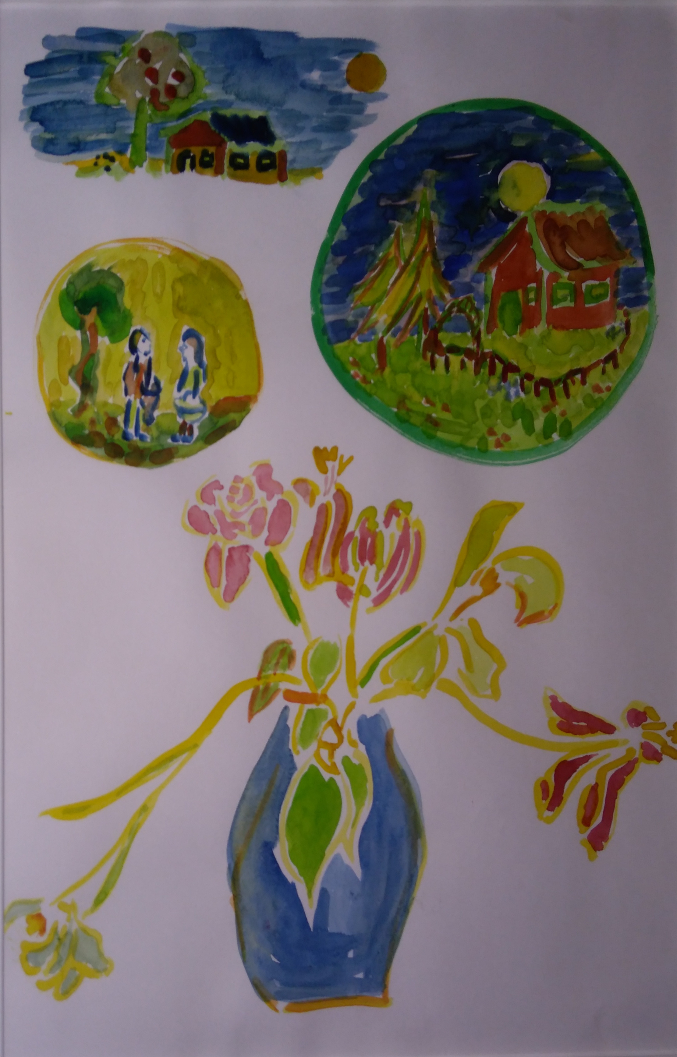 590 Blumen und Kreisbilder, Aquarell auf Papier, 04.2018, 30x40cm, vergeben