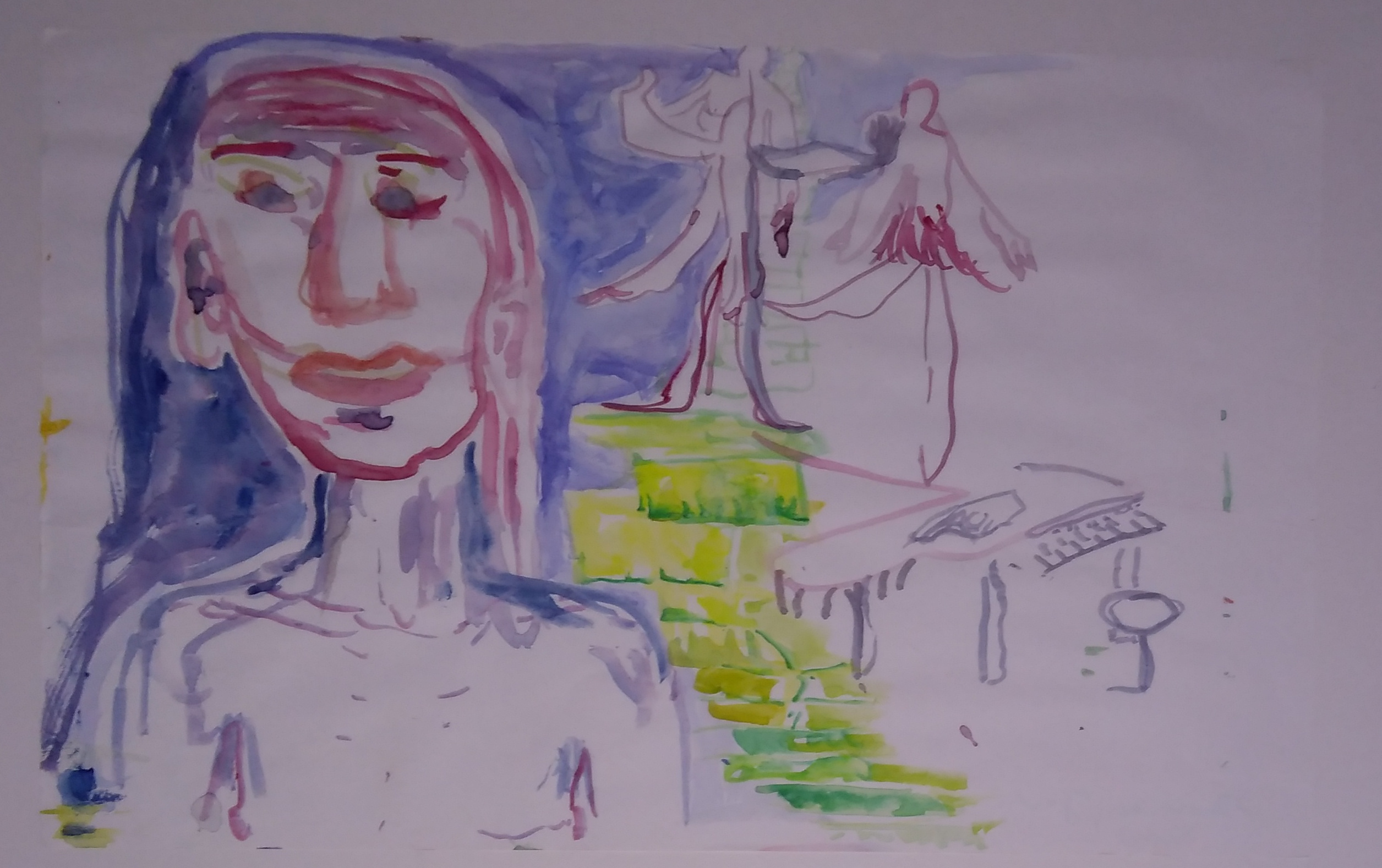 310 Freundin, Acryl auf Papier, 07.2018, 30x42cm, 100€
