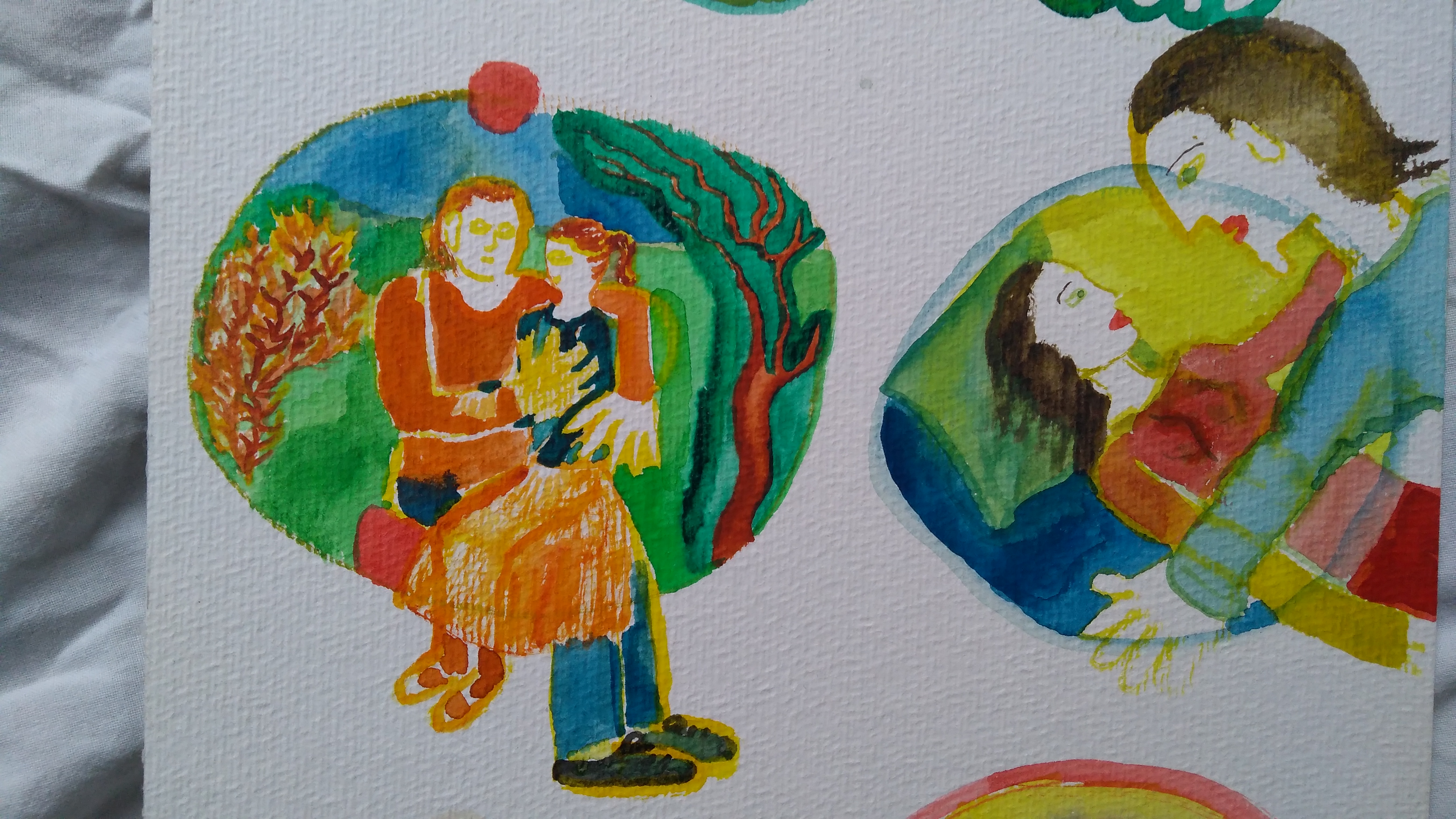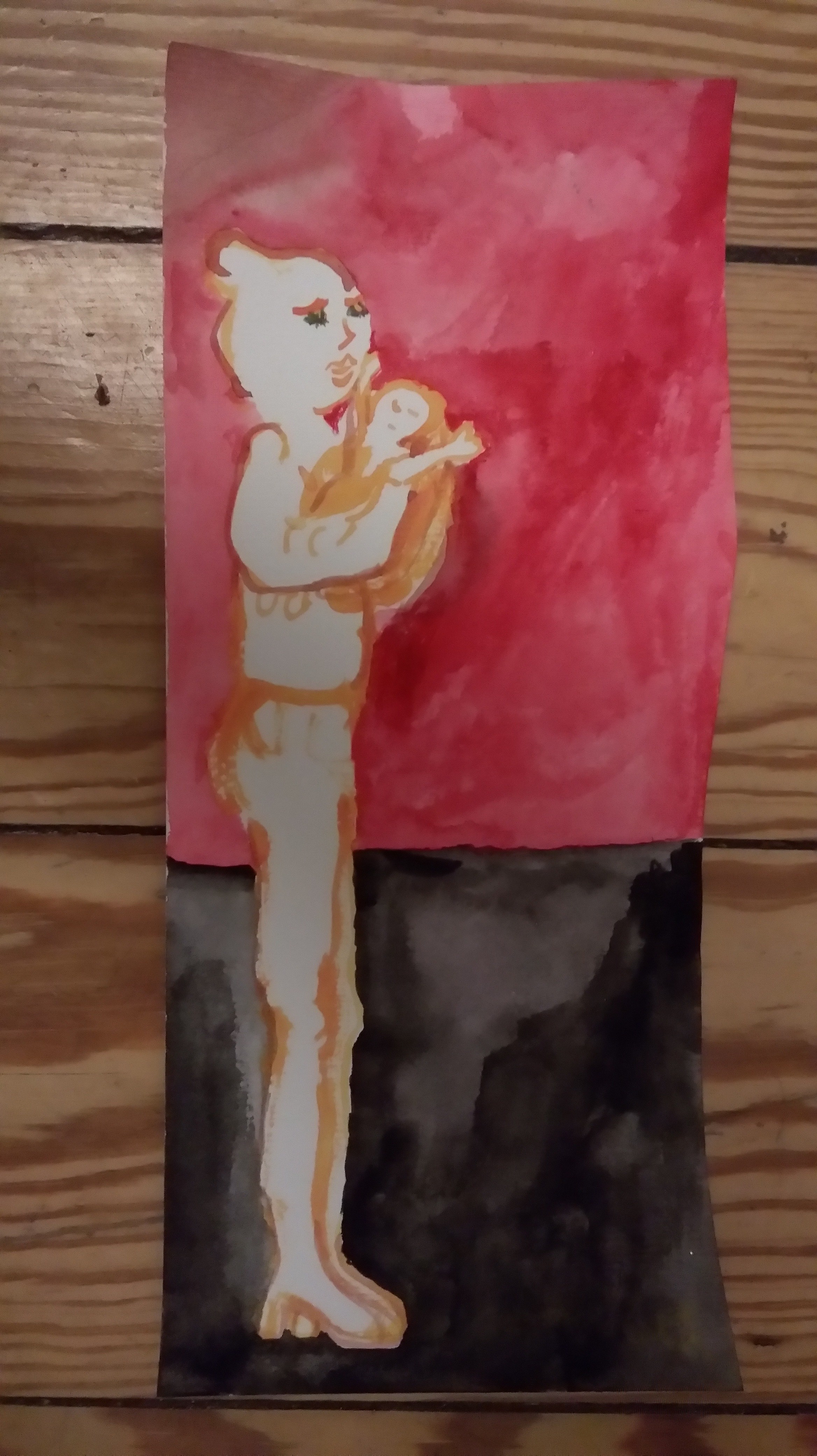 900 Mutter mit Kind (groß), Aquarel auf Papier, 03.2017, 14x30cm, 50€